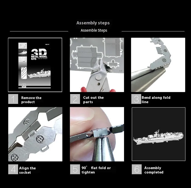 One of the best features of this DIY model is that no glue or soldering is required for assembly. The model pieces fit together seamlessly, thanks to the laser-cut edges that ensure a tight and secure connection. Simply use the included tools to bend and assemble the metal sheets, following the step-by-step instructions provided in the kit. This design feature makes the process straightforward, even for beginners, while still offering plenty of challenges for more experienced builders.