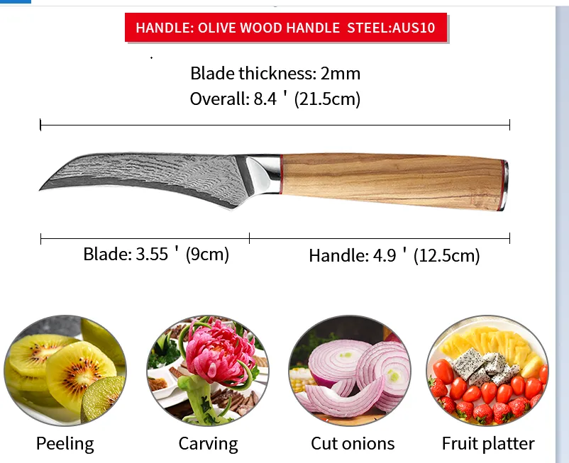 Damascus Knife Kitchen Kitchen Knife Peel Knife