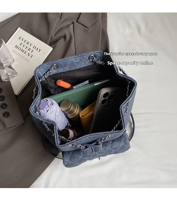 Why Choose the Denim Rhombus Small Chain Backpack?
