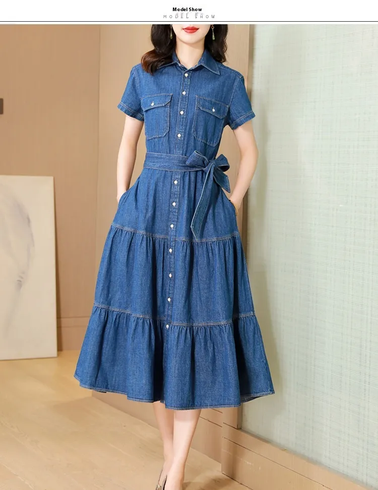 The denim shirt dress is perfect for any season. During the warmer months, it can be worn on its own with sandals for a relaxed, effortless look. As the weather cools down, simply layer it with tights, boots, or a jacket to continue wearing it through autumn and winter. Its versatility makes it a year-round essential in your closet.