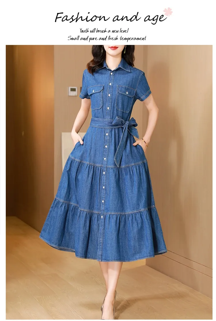 The denim shirt dress is the epitome of easy, laid-back style. Its simple design allows for quick outfit decisions while still maintaining a fashionable appearance. Whether you're in a hurry or simply want to look stylish with minimal effort, this dress can quickly become a go-to in your wardrobe.