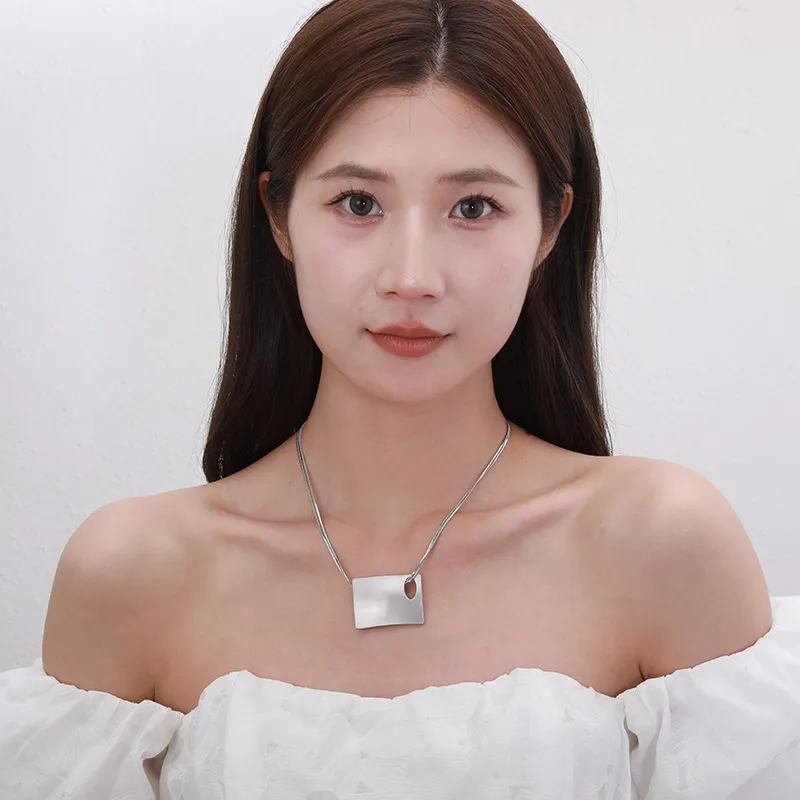 Design Sense Square Hollow Clavicle Chain Lady Necklace: Elegant, Modern, and Minimalist Jewelry