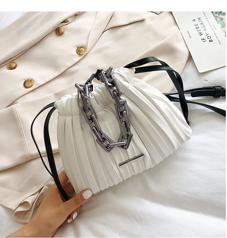 Elevate your style with our Designer Drawstring Bucket Bag with Thick Chain, a chic and versatile accessory that combines fashion with functionality. This trendy bucket bag features a drawstring closure for easy access and security, along with a bold, thick chain strap that adds a touch of sophistication to any outfit. Perfect for everyday use or special occasions, this crossbody bag offers ample space for essentials while making a stylish statement. Ideal for fashion-forward women, this bag is a must-have addition to any handbag collection.