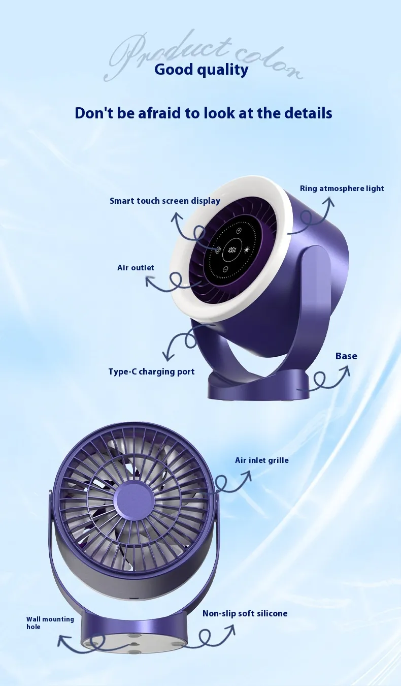 Desktop Adjustable Fan Light Rechargeable Wall Mount Table Fan Light Led Display Air Circulation Cooling USB Table Fan Light