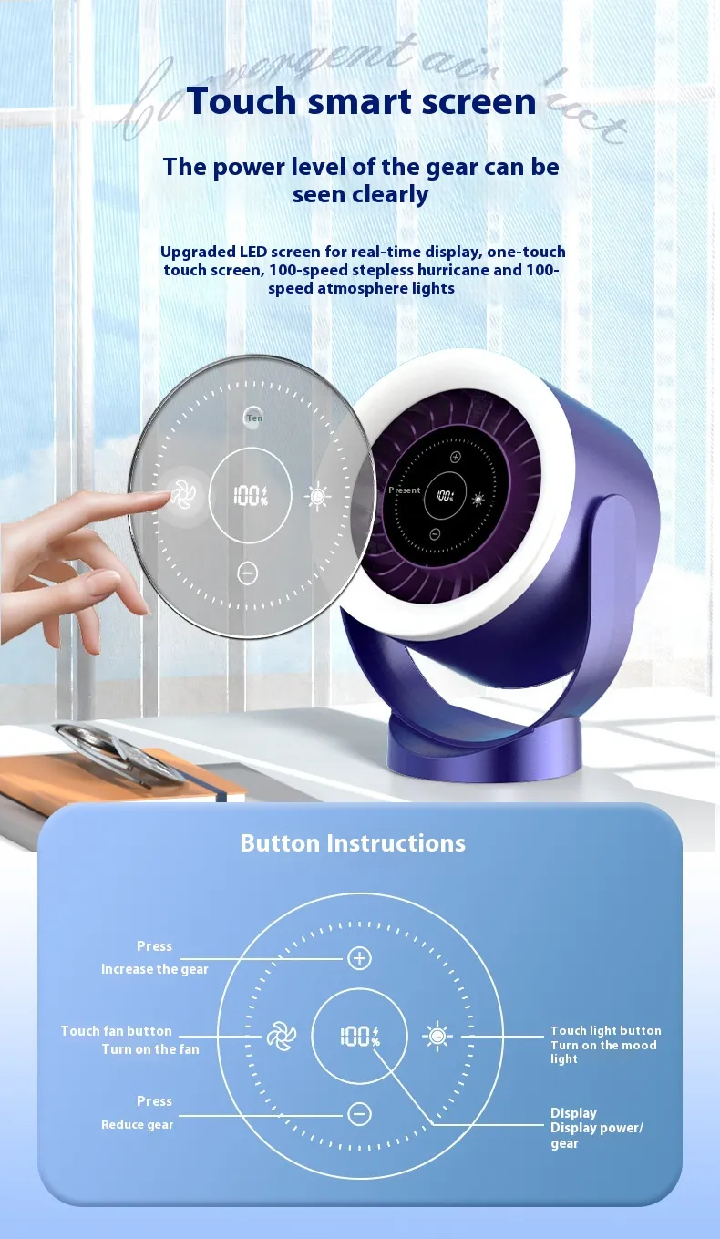 Desktop Adjustable Fan Light Rechargeable Wall Mount Table Fan Light Led Display Air Circulation Cooling USB Table Fan Light
