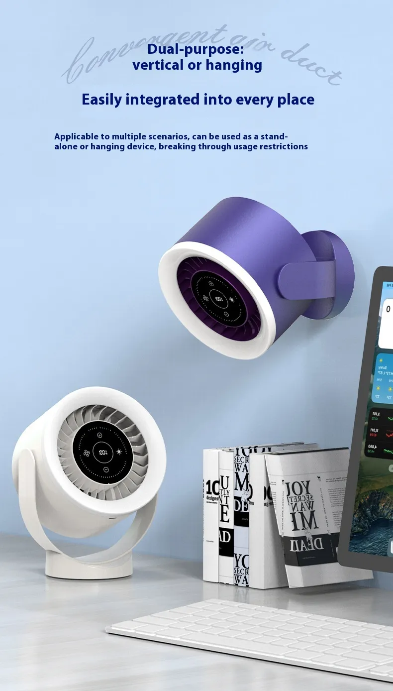 The Desktop Adjustable Fan Light Rechargeable Wall Mount Table Fan Light is the perfect combination of cooling efficiency, modern design, and multi-functionality. Whether you're working at your desk, relaxing at home, or need a reliable fan for your bedroom, this USB-powered fan offers an ideal solution for all your cooling needs. Equipped with a LED light display, adjustable speed settings, and the ability to be wall-mounted or used as a tabletop fan, it ensures you stay comfortable no matter where you are.