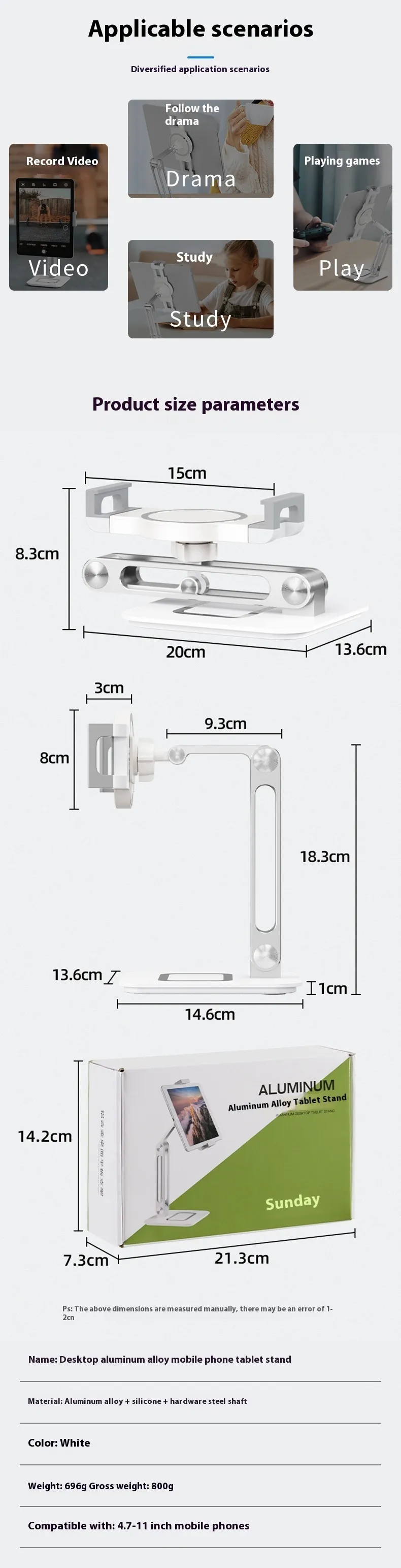 The Desktop Folding Tablet & Mobile Phone Stand crafted from aluminum alloy is perfect for New Zealand users seeking a durable, portable, and versatile device holder. Ideal for home, office, or study setups, this stand supports tablets, smartphones, and small devices, allowing hands-free use for reading, video calls, streaming, or gaming.