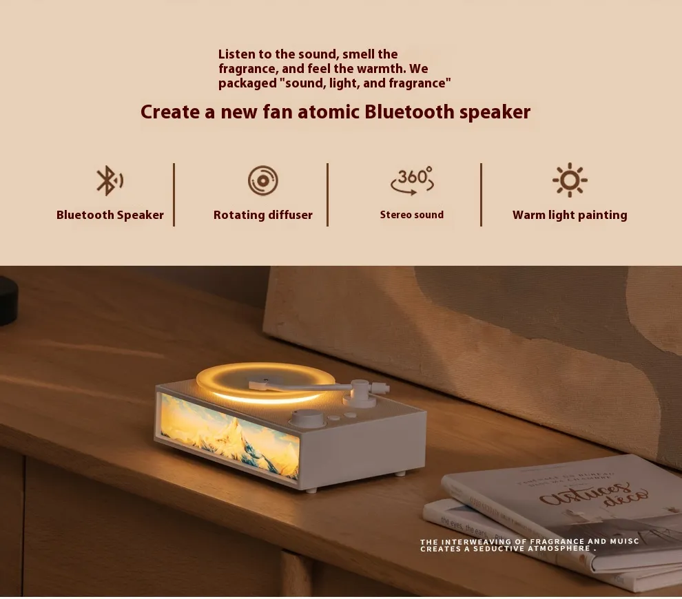 creating a truly immersive experience for your senses.The Desktop Fragrance Vinyl Bluetooth Speaker connects effortlessly to your devices