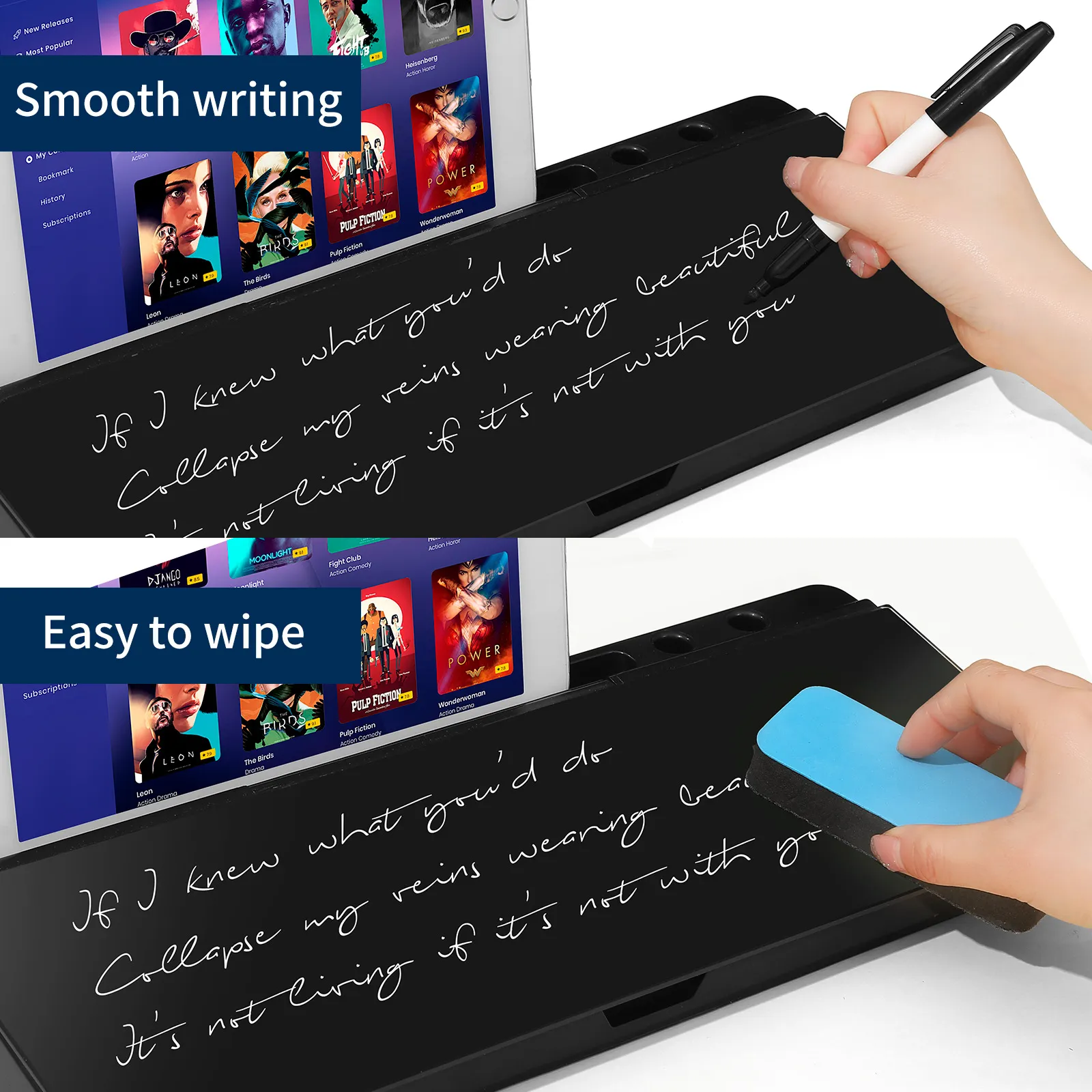 The tempered glass surface offers a high-end look that complements any office or home décor, while its robust construction ensures long-lasting use. The non-slip design keeps the whiteboard securely in place, making it perfect for busy work environments. The angled writing surface provides a comfortable writing position, whether you’re standing or sitting, and is compatible with all standard dry-erase markers.