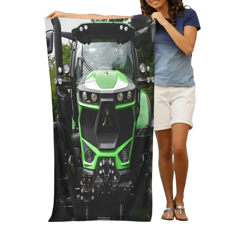 The DEUTZ-FAHR Logo Tractor Design Microfiber Beach Towel is a functional and stylish essential for fans of the iconic tractor brand. Designed with a bold green tractor pattern and official DEUTZ-FAHR branding, this towel combines practicality, comfort, and heritage. Made from premium microfiber polyester, it’s lightweight, quick-drying, and easy to carry—perfect for the beach, gym, pool, or travel.