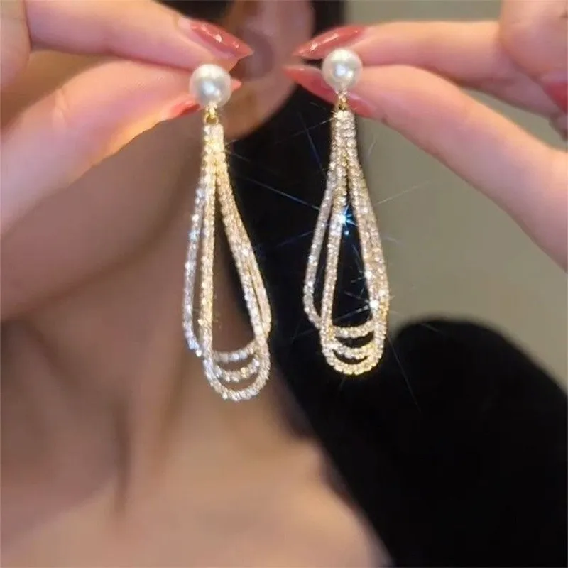 Diamond Pearl Earrings Long Tassel Earrings