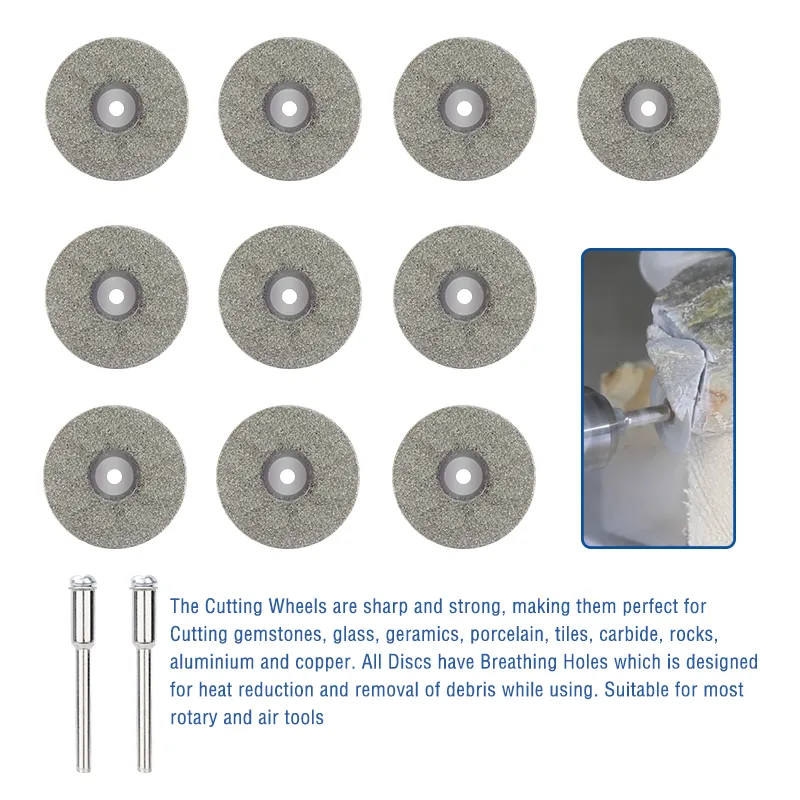2. Resin/Diamond cutting wheels set meets the cutting needs for all kinds of metal, soft alloy, aluminum, diamond, stone, ceramic, glass,