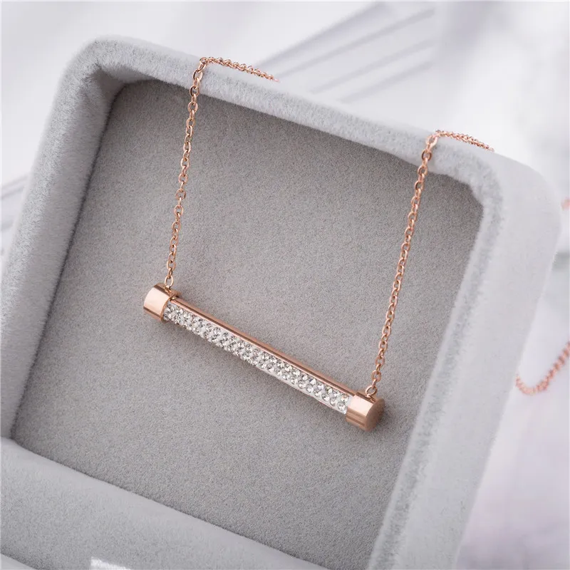 Diamond Word Necklace Fashion Simple Titanium Steel Rose Gold Plated