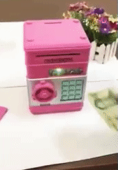 Features: 2 in 1 function: money saving box and password safe box. A unique bank that will not only help your kids save money, but also provide lots of fun! Two sound switchable: beeps sound and voice prompt. Automatic Rolling Banknote: Put your paper money into the roll slot, and it will automatically roll the money into the box.