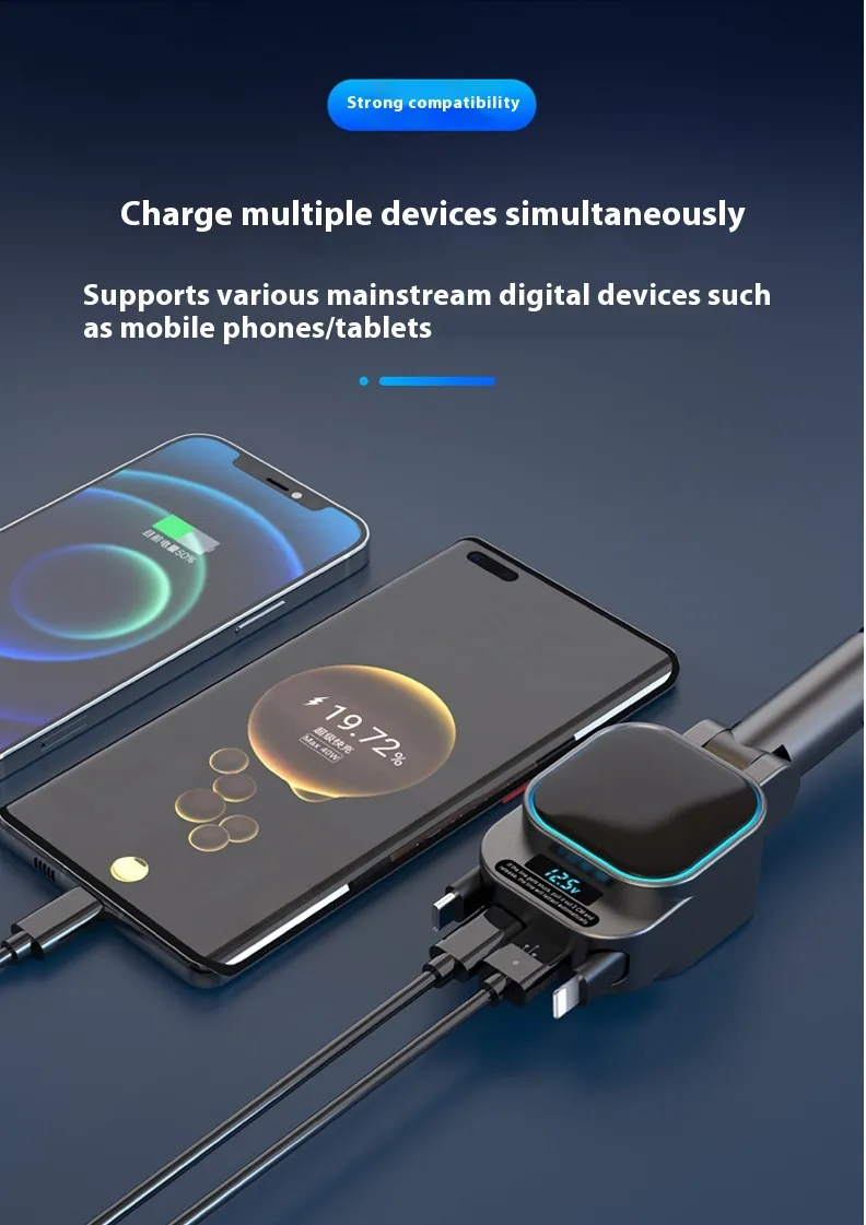 - 🔌 One-for-four charging ports – charge up to four devices simultaneously