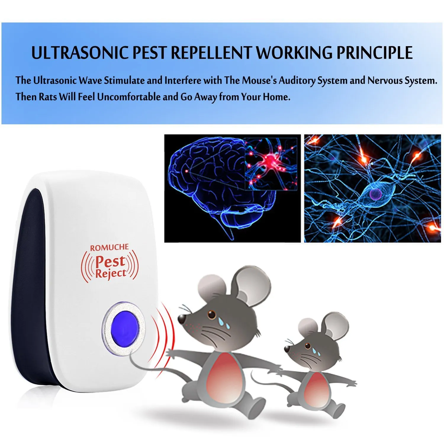 Easy to Use: Simply plug in the device, and it begins emitting ultrasonic waves. No maintenance, no refills, and no fuss –