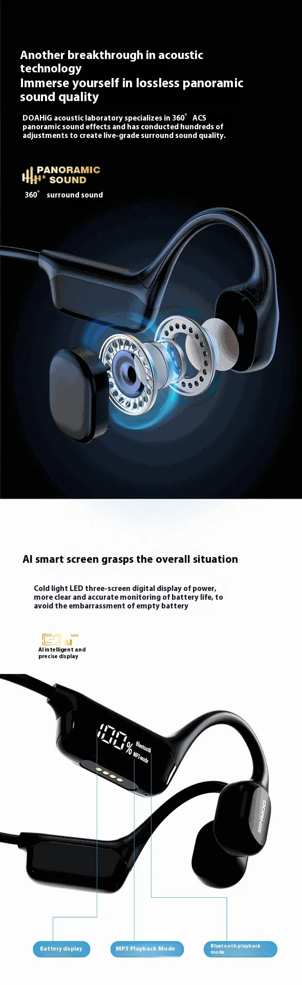 Display Screen Bluetooth-compatible Headset For Bone Conduction 53 Waterproof Sports Headset SKU: CJYP209135201AZ Lists: 25