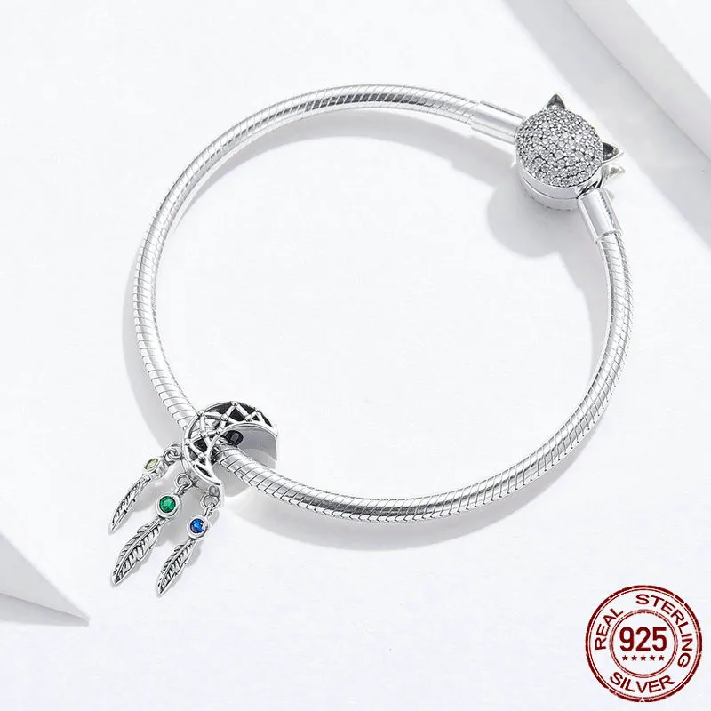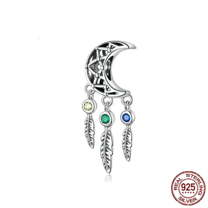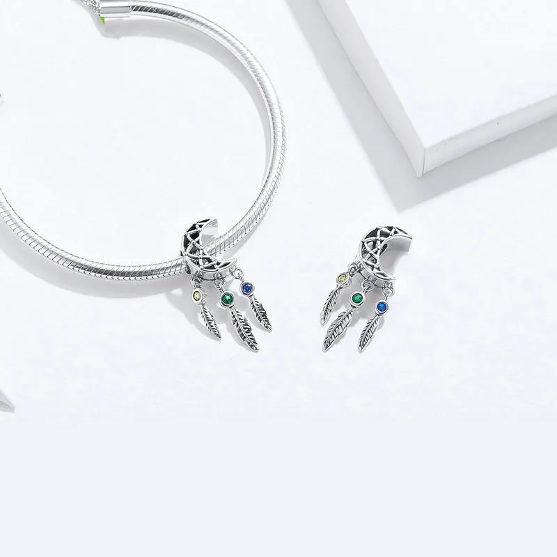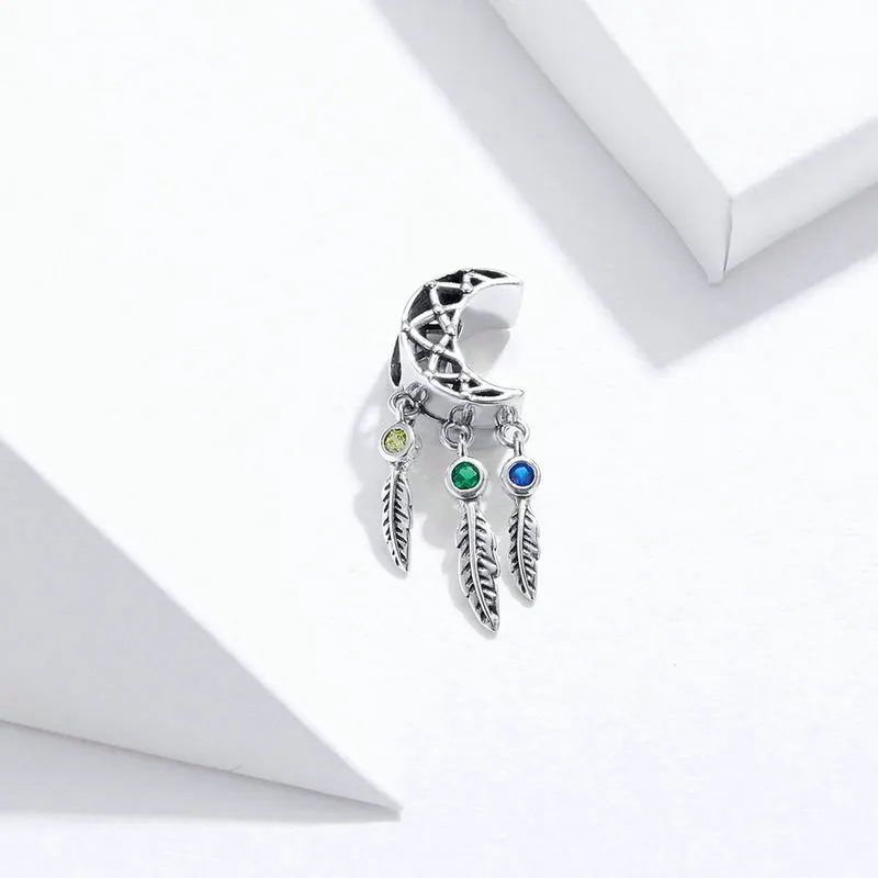 DIY Bracelet Bead Long Pendant Retro Curved Crescent Feather Hollow Moon Pendant