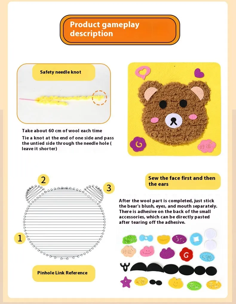 DIY wool embroidery music-frog, DIY wool embroidery music-bear, DIY wool embroidery music-chicken, DIY wool embroidery music-Panda chicken