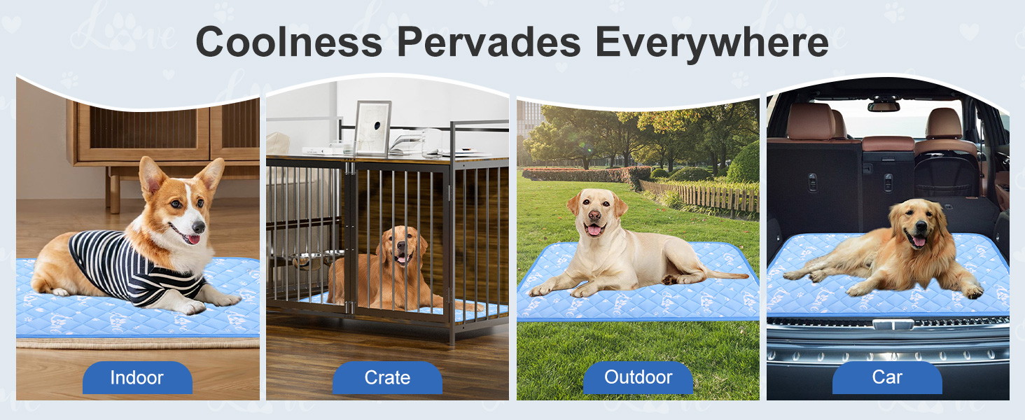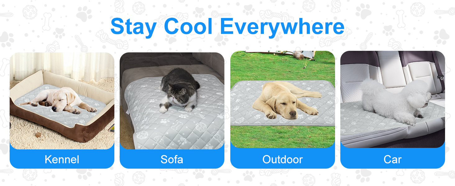 The dog cooling mat is suitable for indoor and outdoor use. It can be folded easily. You can place it in kennels, sofas, pet beds, car seats and outdoor shady places.