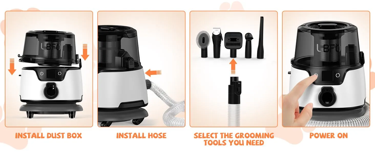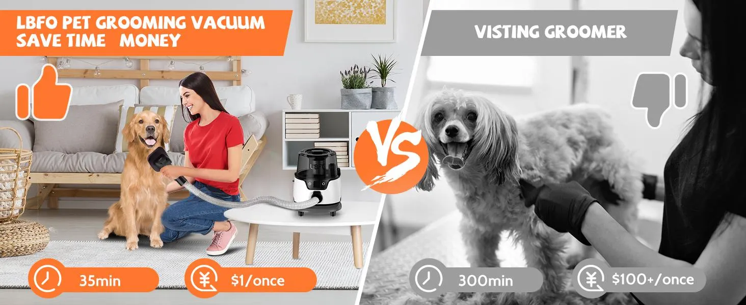 600W Super Power - While ordinary dog grooming clippers usually leave a trail of messy and loose hair, our pet grooming vacuum cleaner has an impressive 600W super power. The dog grooming vacuum cleaner has 6 adjustable power levels, giving you the flexibility to choose the perfect setting for your furry buddy. Rest assured that even pets with dense hair can be groomed easily, thanks to the superior suction power of up to 16.6Kpa.