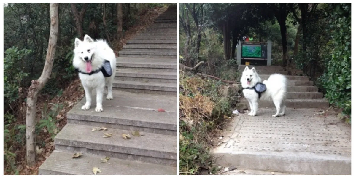 Dogs go out from backpack