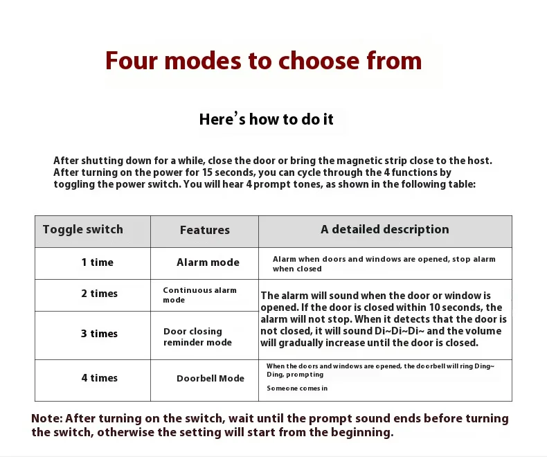 Easy to Install and Use: The Door Open Buzzer is simple to install and can be set up with minimal effort.