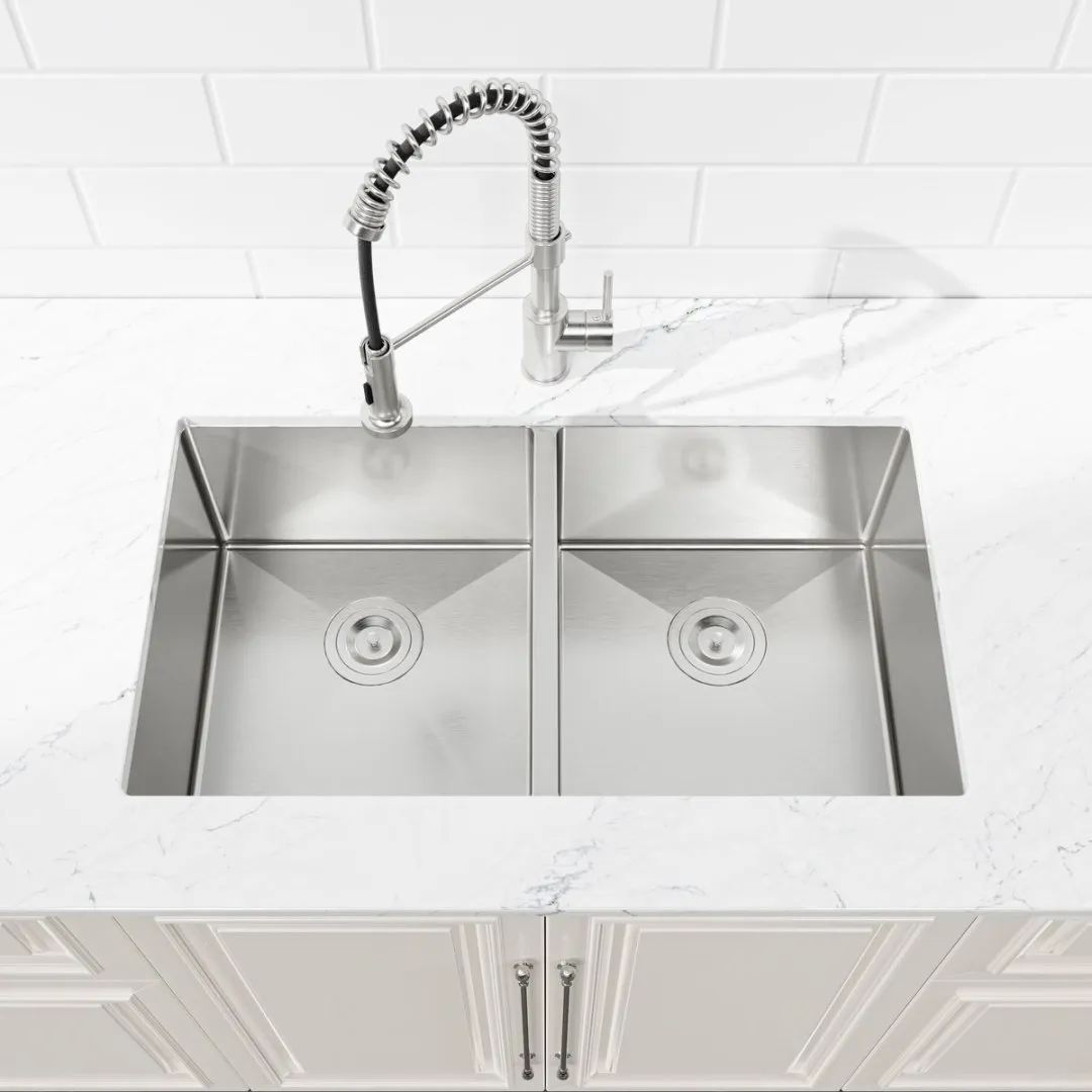 Sustainable Brushed Steel: This scratch-resistant and easy-to-clean finish ensures your sink remains pristine and durable well into the