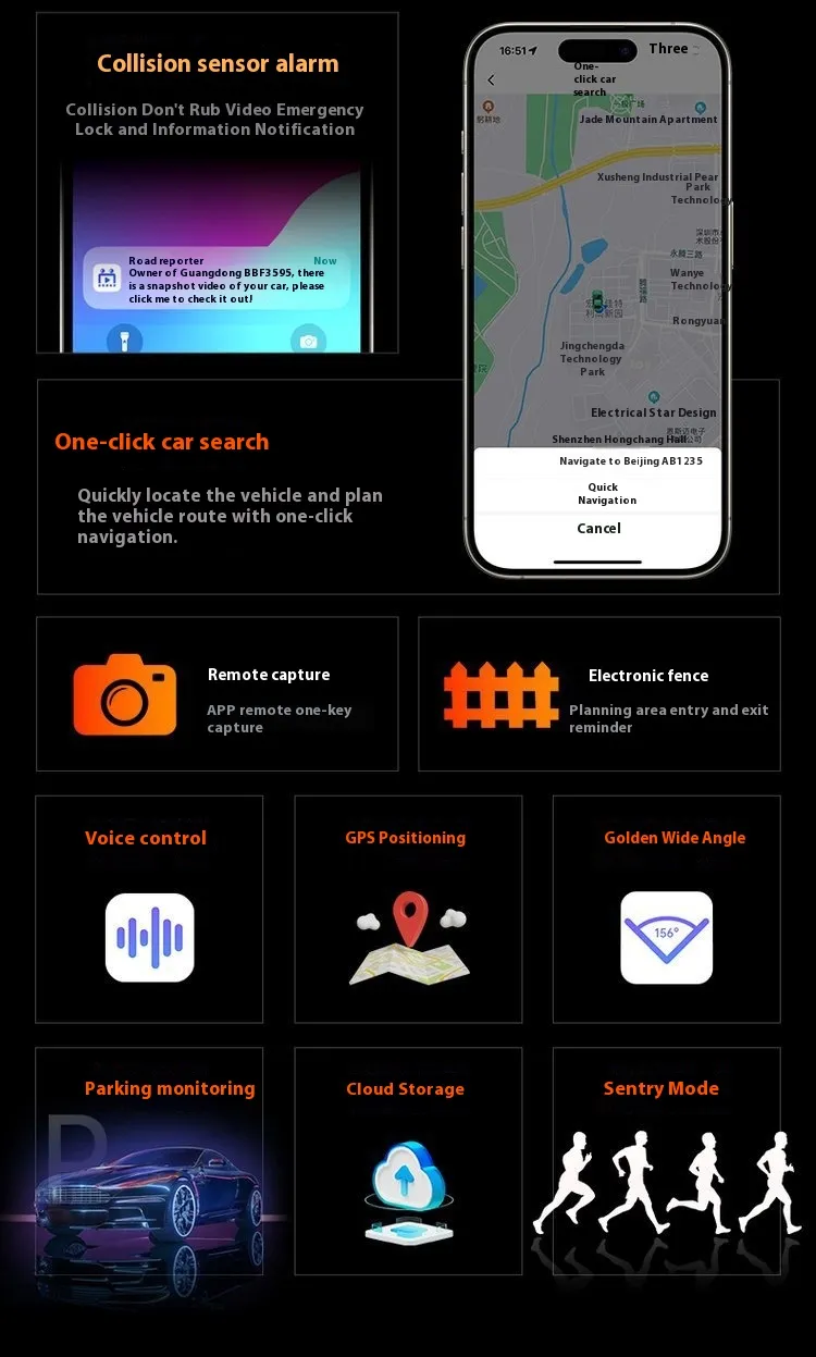 Color classification: remote real-time monitoring GPS positioning anti-glare screen sentry mode], remote real-time monitoring GPS