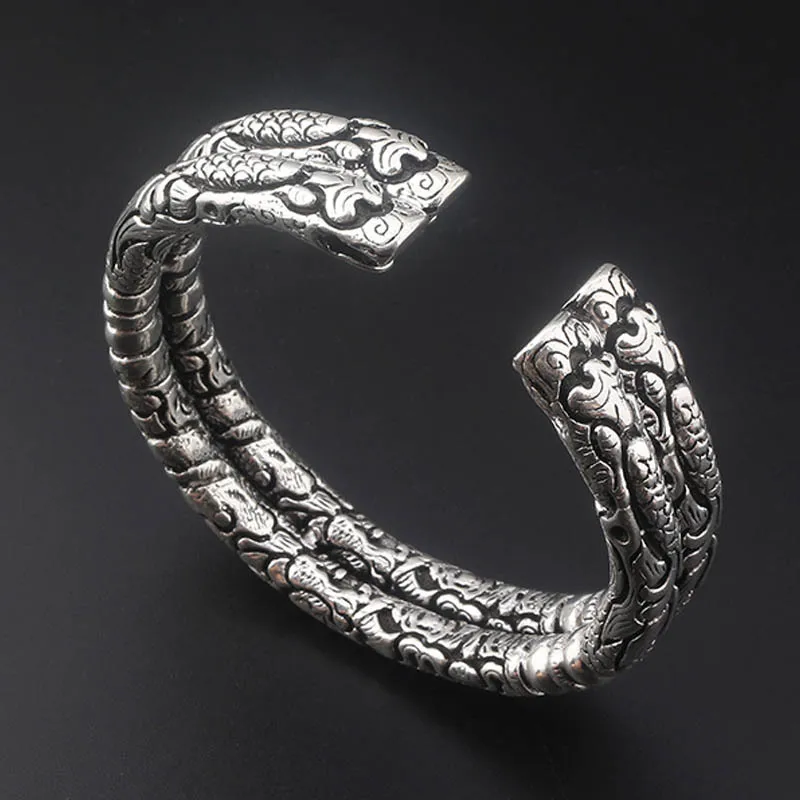 Double faucet bracelet Retro silver opening Buddha with the same paragraph Viking wolf head bracelet