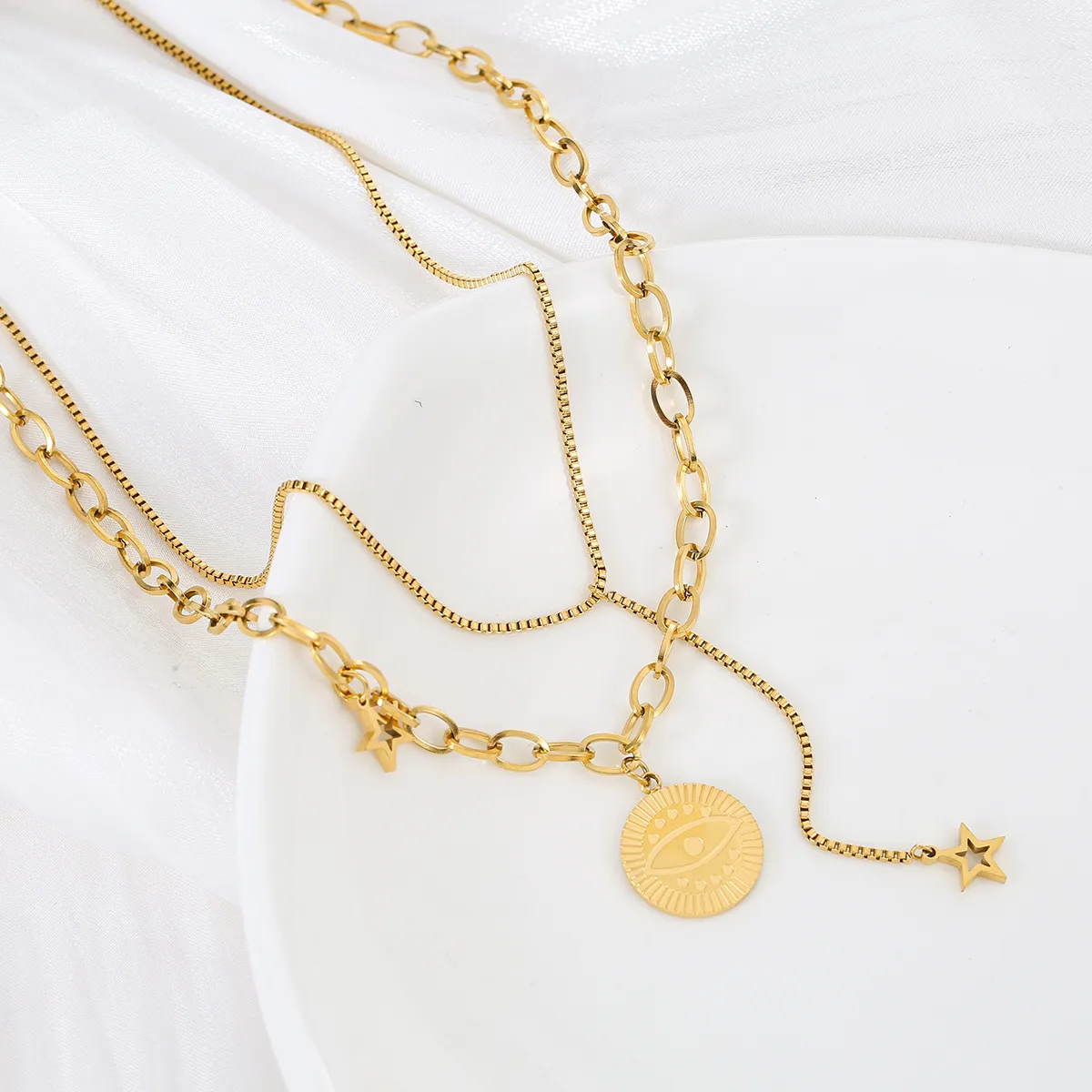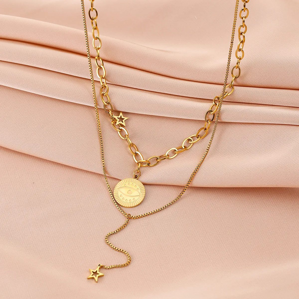 Double-layer God's Eye Titanium Steel Necklace