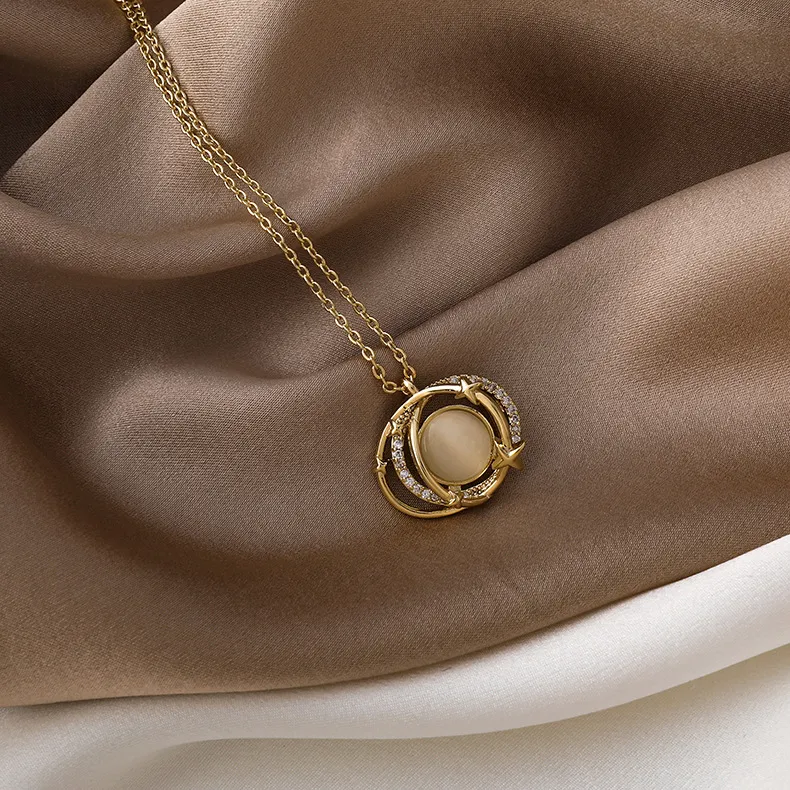 Double round overlapping opal planet necklace women