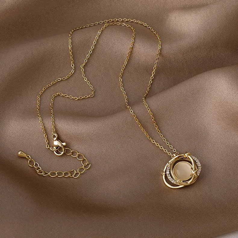 Double round overlapping opal planet necklace women