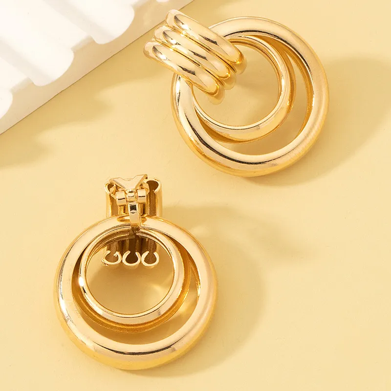 Double Round Ring Twin Twisted Ear Clip