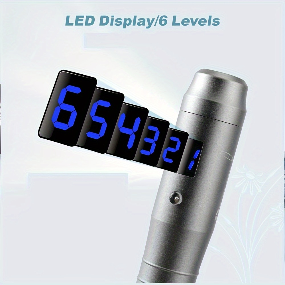 The pen features a built-in digital display that shows the active speed setting. Users can select from multiple speed levels to adjust the treatment intensity based on skin area and comfort preference. This digital control ensures consistency across sessions.