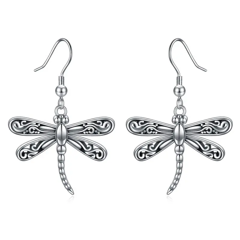 Dragonfly Dangle Drop Earrings Jewelry in Sterling Silver Oxidized