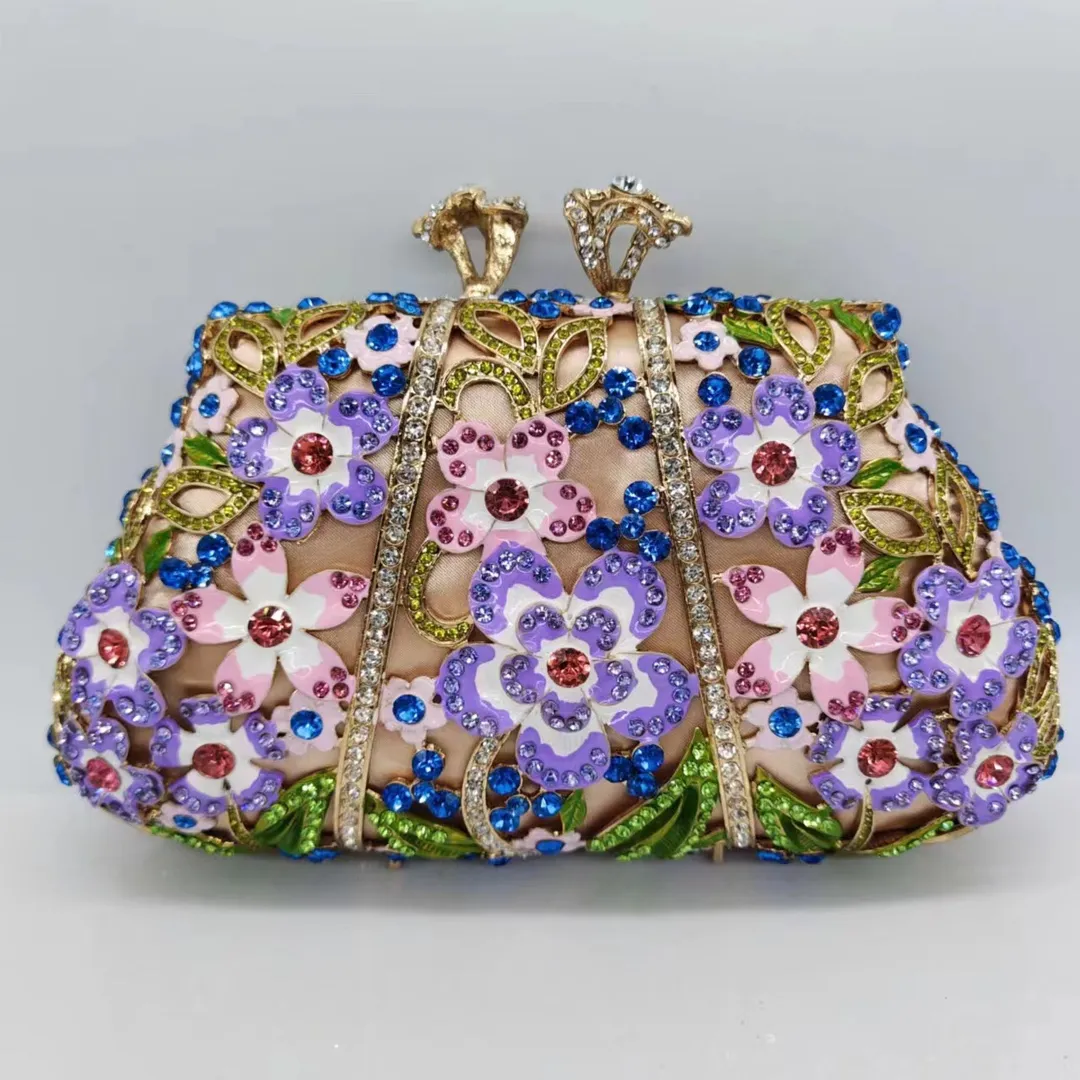 Dripping Oil Diamond Evening Bag Enamel Color Flower Clutch