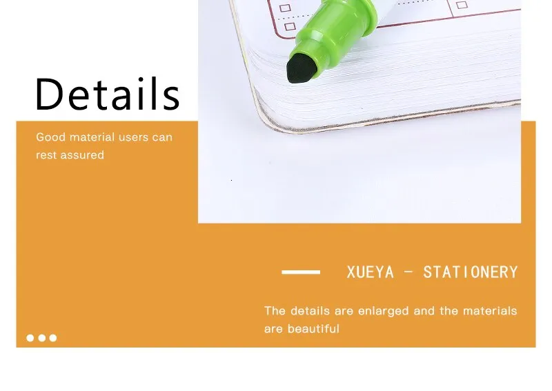 Our Dry Highlighter Pen is the perfect solution for anyone looking for a mess-free, vibrant, and precise highlighter. With its dry ink technology, quick-drying formula, and precise tip, it ensures a smooth highlighting experience without the frustration of smudging or bleeding. Whether you're highlighting study notes, marking important sections of a report, or adding flair to your creative projects, this pen is an essential tool for anyone who needs reliable and vibrant highlights.