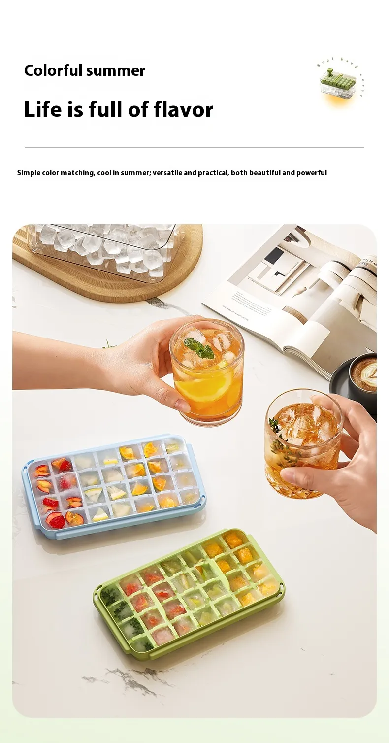 1. Easy to release: By positioning the ice cubes tray and lid correctly, utilize the press design to release all ice cubes effortlessly with