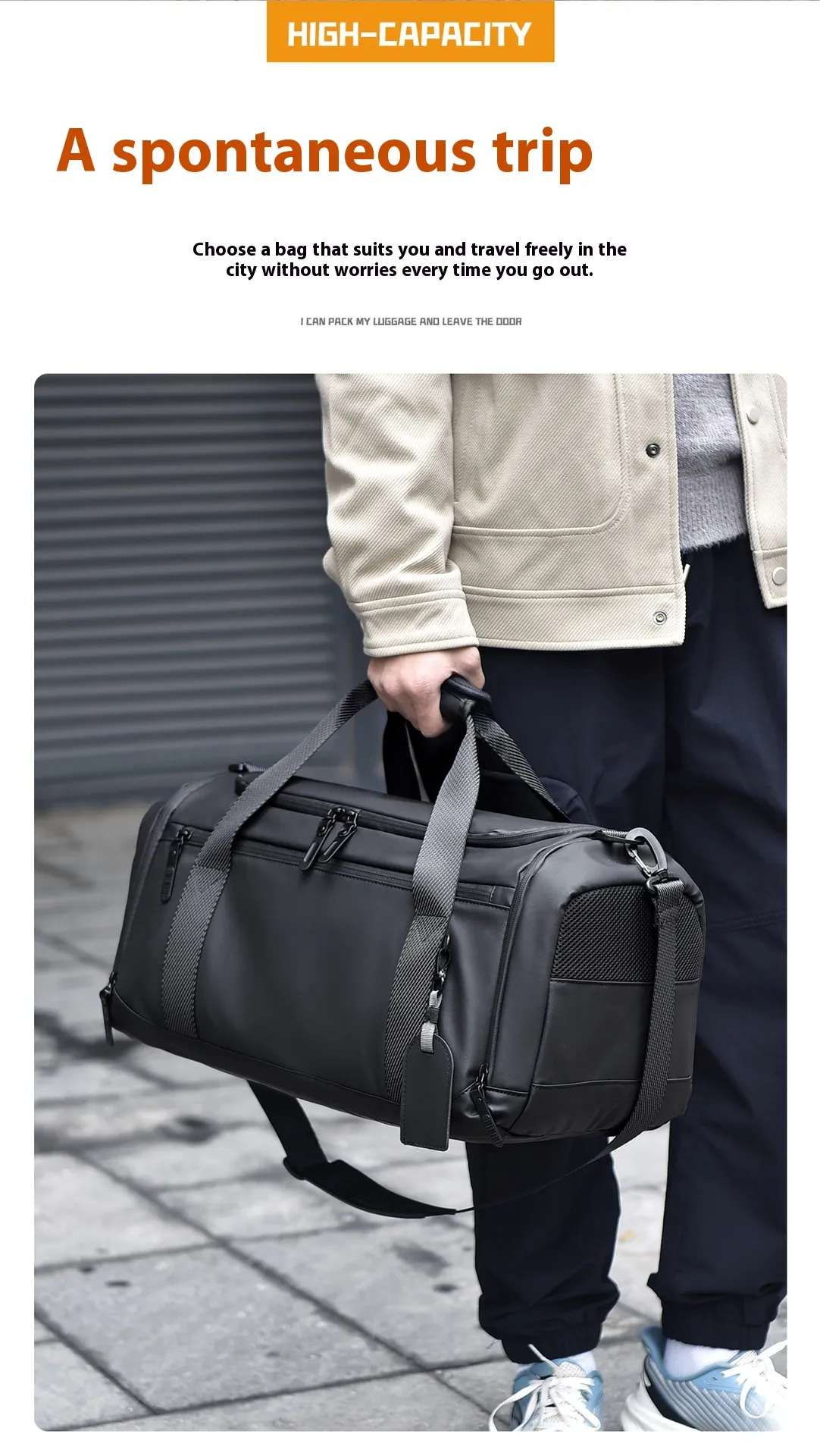 With dry wet separation technology, this bag offers a dedicated compartment to store wet or dirty items, like shoes or towels, separate from your clean clothes and other essentials. The large capacity design ensures you can pack everything you need, and the handbag style makes it easy to carry as either a shoulder bag or a travel companion.