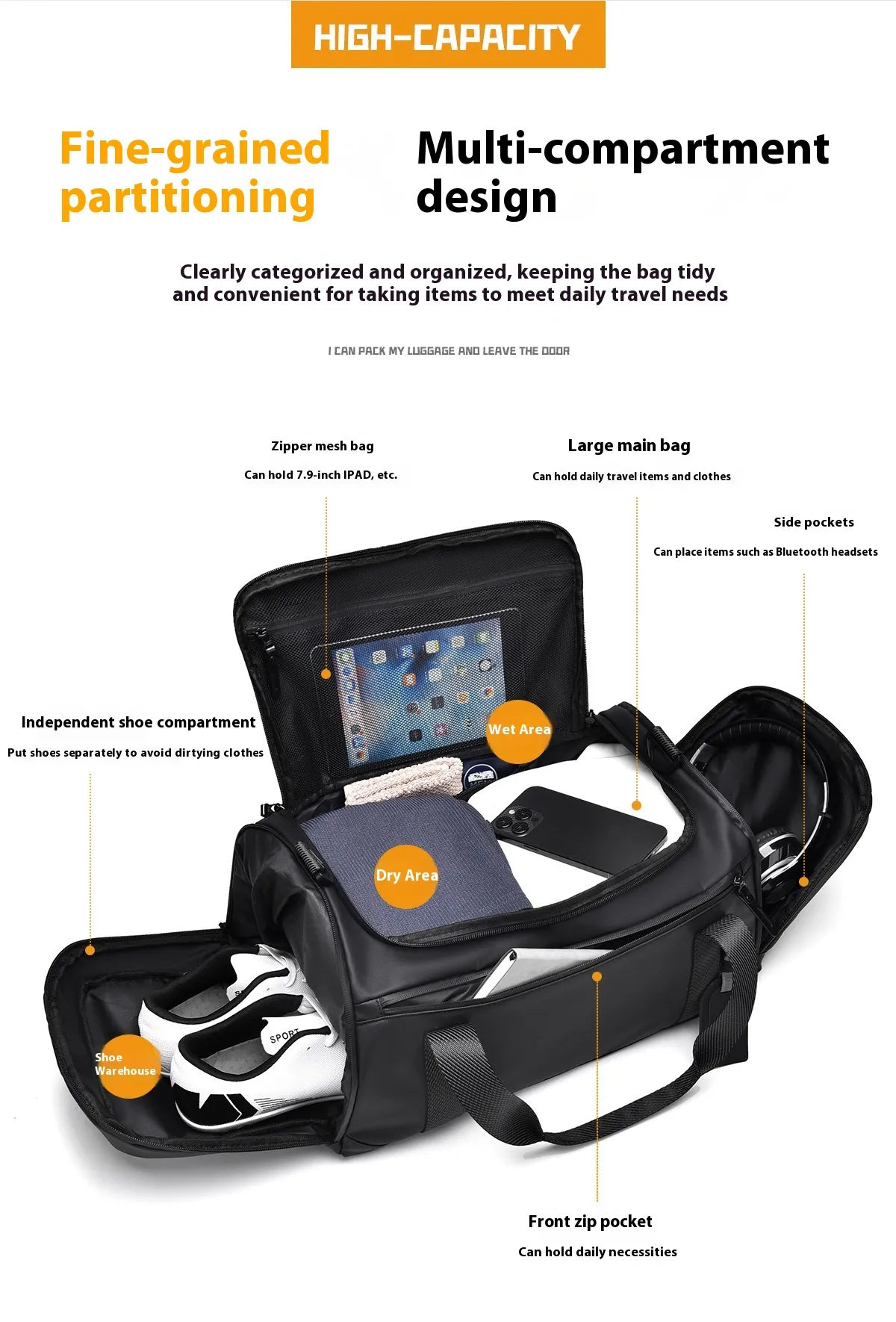 Key Features of the Dry Wet Separation Shoe Warehouse Large Capacity Handbag