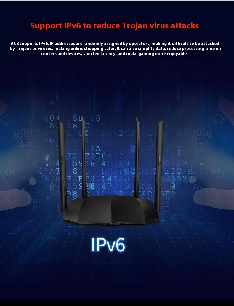 With dual-band support, this wireless router ensures that you can enjoy the best of both worlds—2.4GHz for longer range and 5GHz for higher-speed performance. The 5GHz band delivers faster speeds and less interference, making it ideal for activities that require high-bandwidth, such as streaming, gaming, and video conferencing. The 2.4GHz band ensures reliable coverage across larger areas, providing a stable connection for all your devices, even in rooms far from the router.