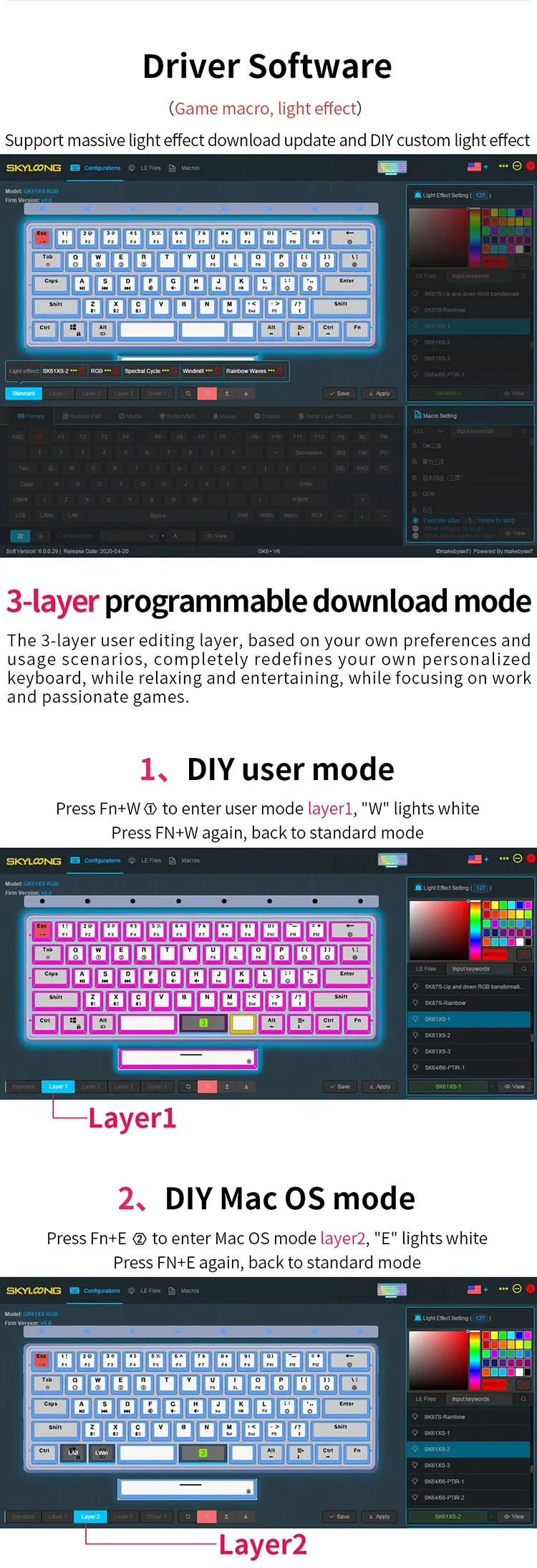 Customize key mappings, lighting effects, and macro settings with the easy-to-use software, which gives you advanced control over your setup. Program complex macros for gaming or work tasks, making it easier to perform repetitive actions.