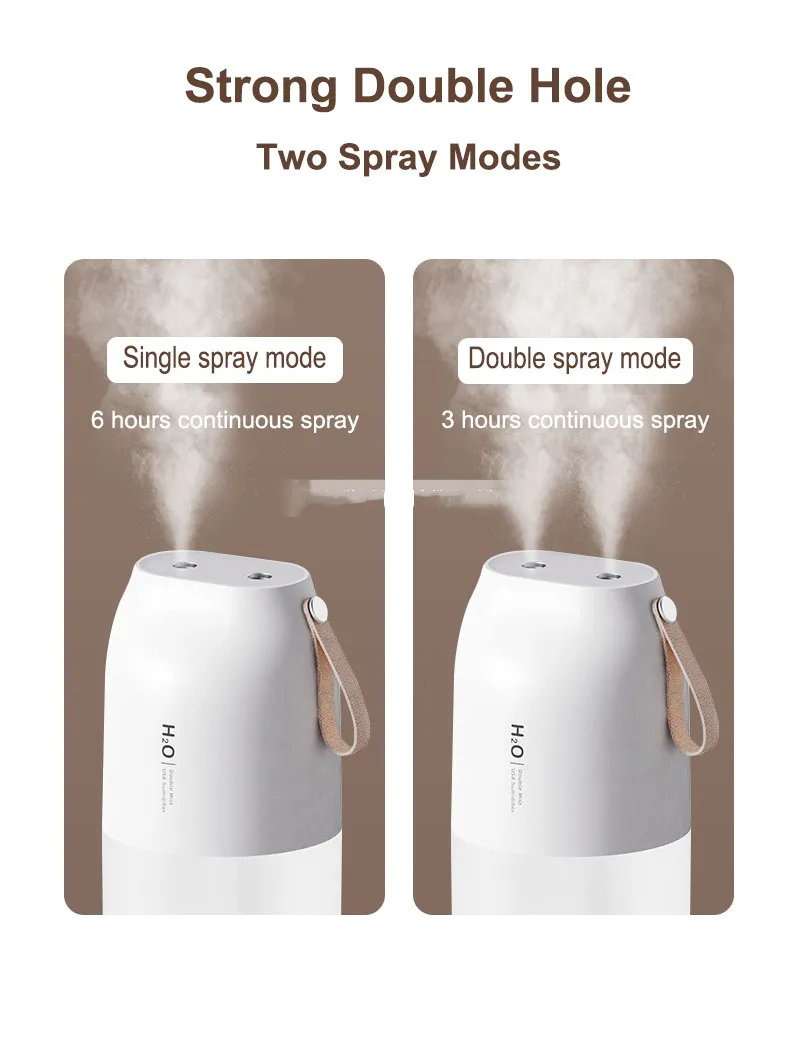 The dual-spray design ensures that this humidifier delivers an even distribution of mist for optimal air moisture. With two mist outlets, it enhances the humidifying power, allowing you to quickly and efficiently hydrate the air in your home, office, or car. Whether you need a gentle mist for a restful night’s sleep or a stronger spray for dry environments, the dual-spray functionality gives you full control.