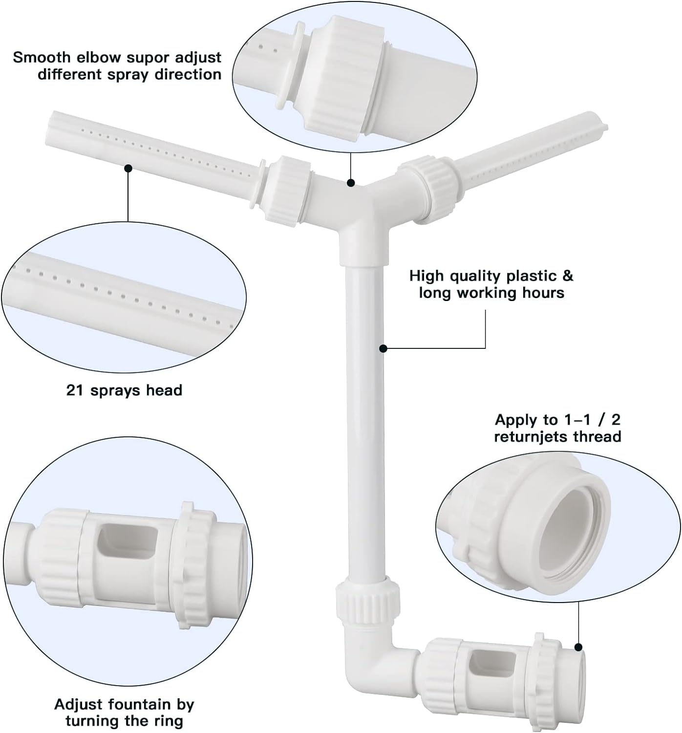 Constructed from durable, weather‑resistant materials, this fountain is engineered to withstand extended outdoor use and constant water pressure without corrosion or wear. The dual spray design creates broad, lively water arcs that are visually captivating and perfect for splash games, running through streams, or simply creating a refreshing atmosphere around your pool.