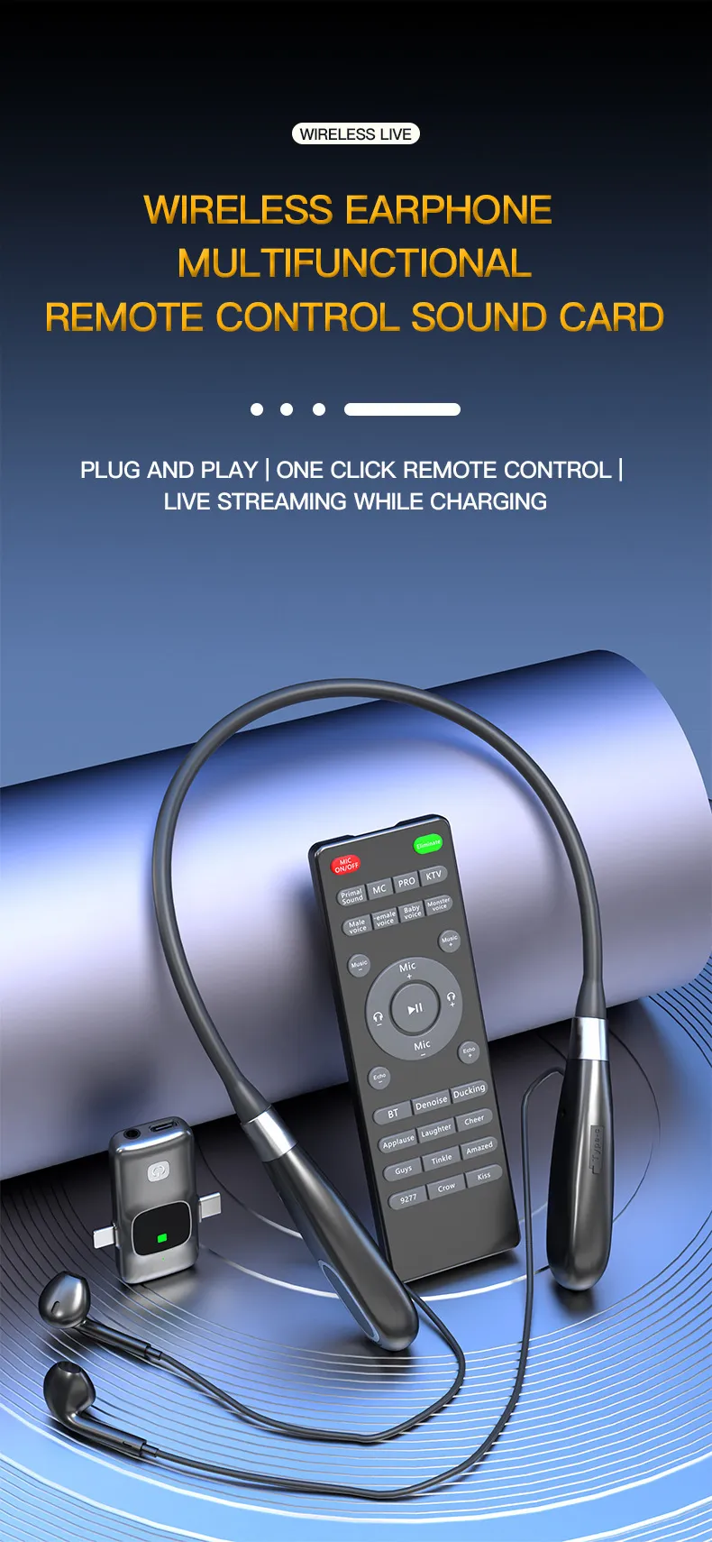 The E8 Microphone Mobile Live Streaming Sound Card Headset is an all‑in‑one audio solution designed to enhance your mobile live streaming, video recording, gaming chats, and voice calls. Featuring a neck‑hanging design, this headset keeps your microphone in the optimal position for clear sound capture while providing convenient hands‑free use. Combined with an integrated sound card, it delivers enhanced audio processing and effects directly to your mobile device, making your voice sound richer and more professional.