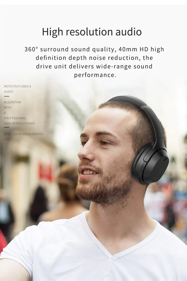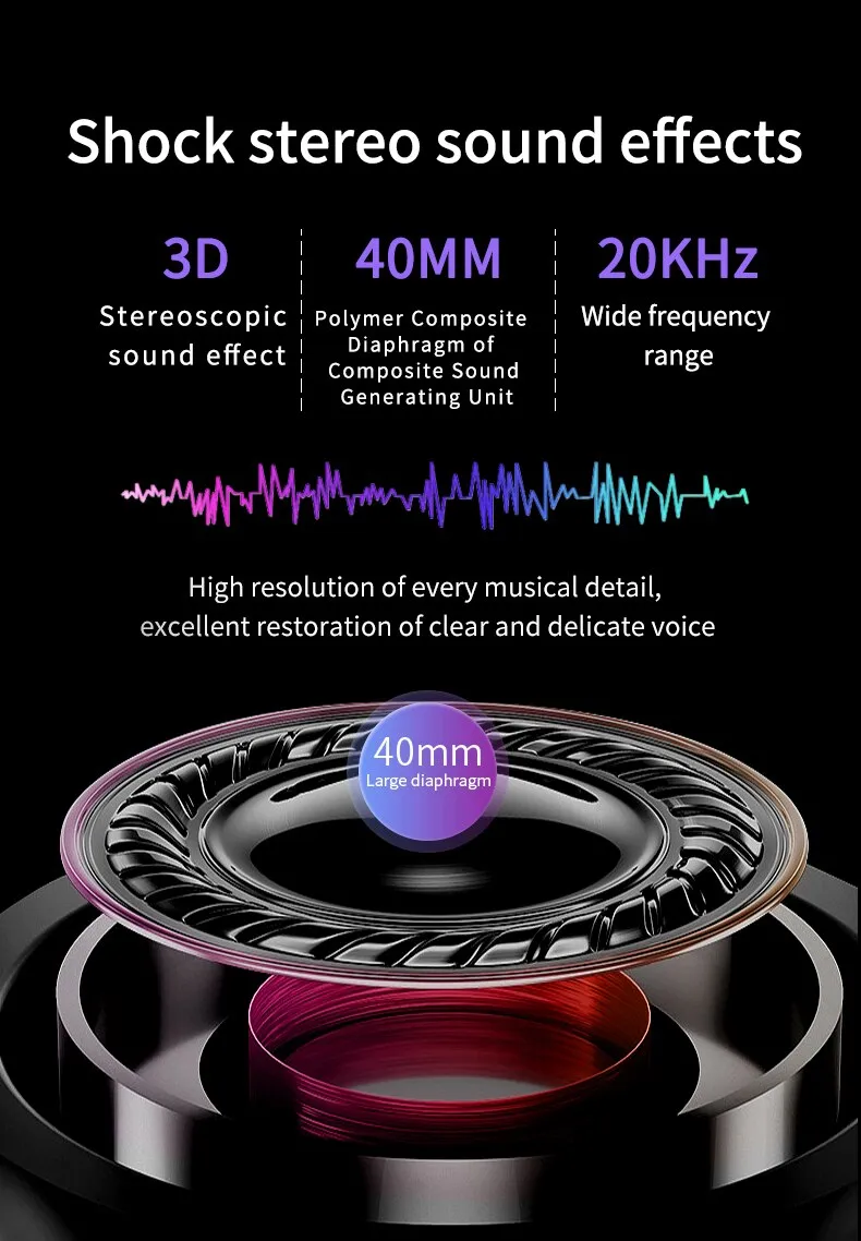 This Bluetooth headset features advanced audio technology to deliver clear, rich sound with deep bass, detailed highs, and balanced mids. Whether you're listening to music, podcasts, or making hands-free calls, you’ll enjoy high-quality audio that enhances your experience. The headset's noise-canceling capabilities block out external distractions, allowing you to focus on your content and conversations with minimal interruption.