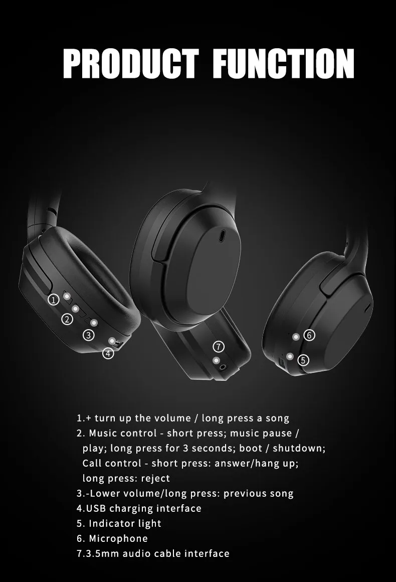 Functions: power display, call function, music support, multi-point connection