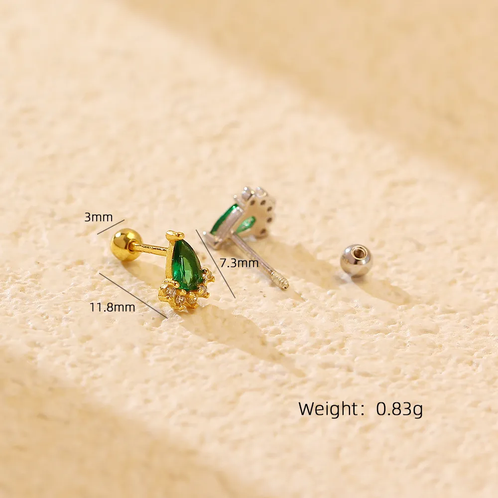 Where to Wear Ear Studs Silver Emerald Diamond Screw