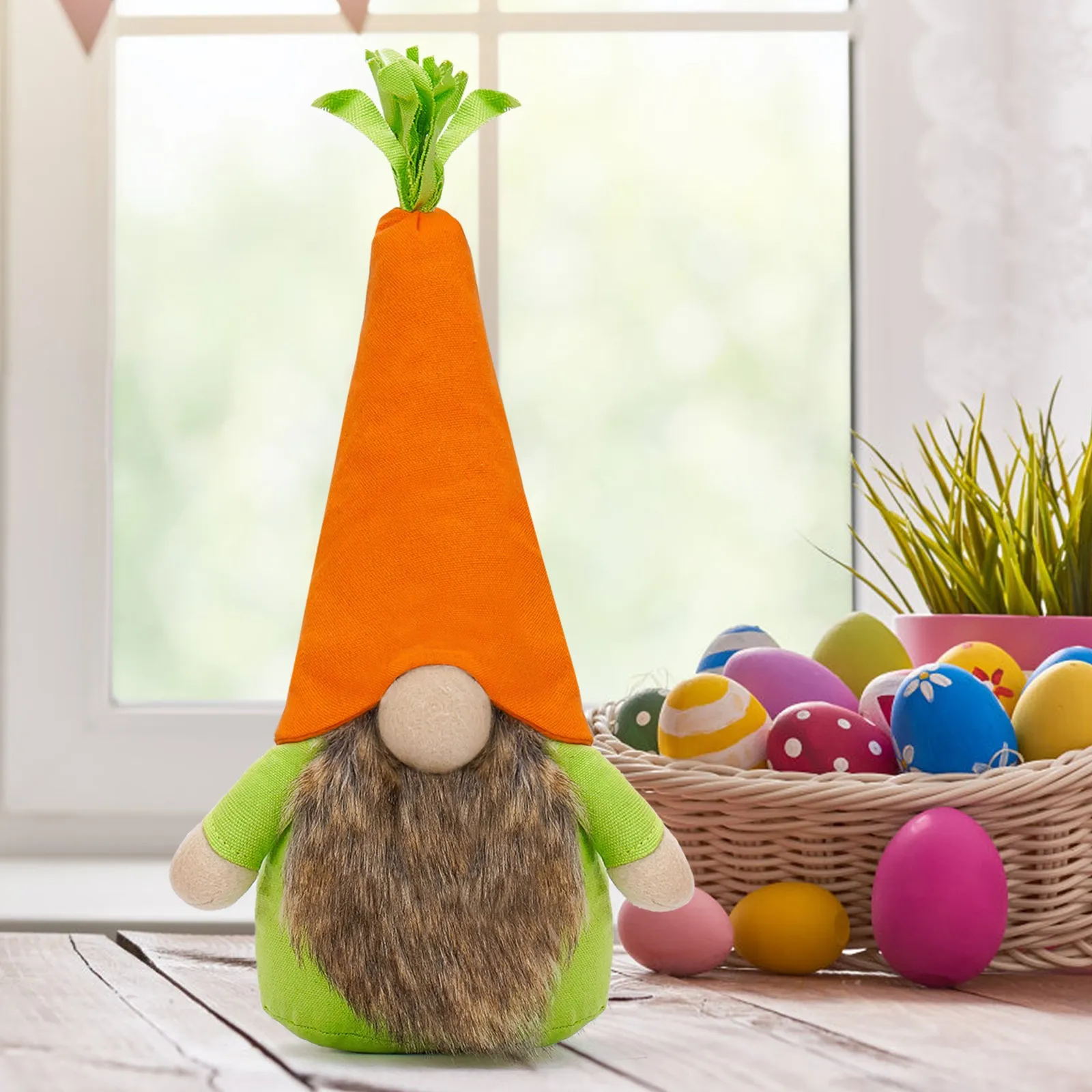 The Easter Doll with Radish & Rabbit Hat is a charming and whimsical decoration designed to bring festive cheer to your home during the Easter season. This handcrafted doll features a playful combination of a rabbit-themed hat and a radish accessory, embodying the spirit of spring and renewal. Its soft, pastel colors and endearing design make it a delightful addition to any Easter display.